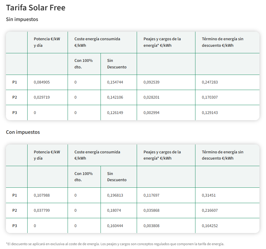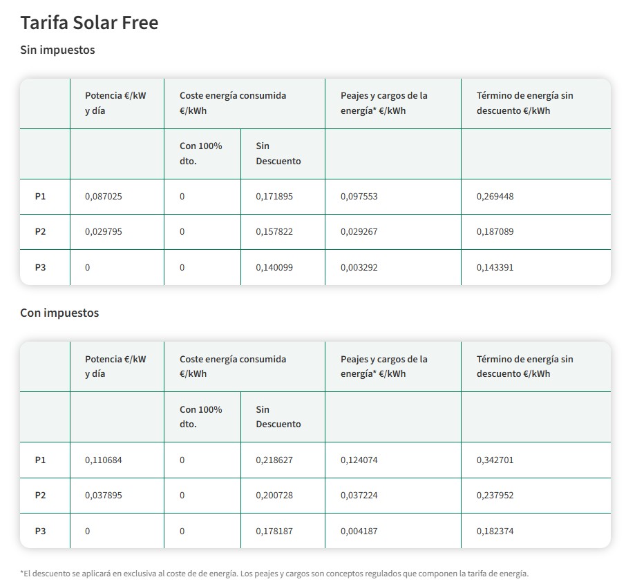 Tarifa Solar Free